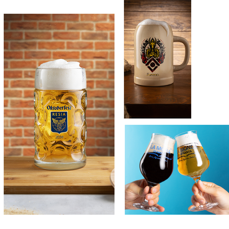 Seleziona tra la nostra vasta gamma di bicchieri, calici e Boccali per creare il tuo prodotto personalizzato.